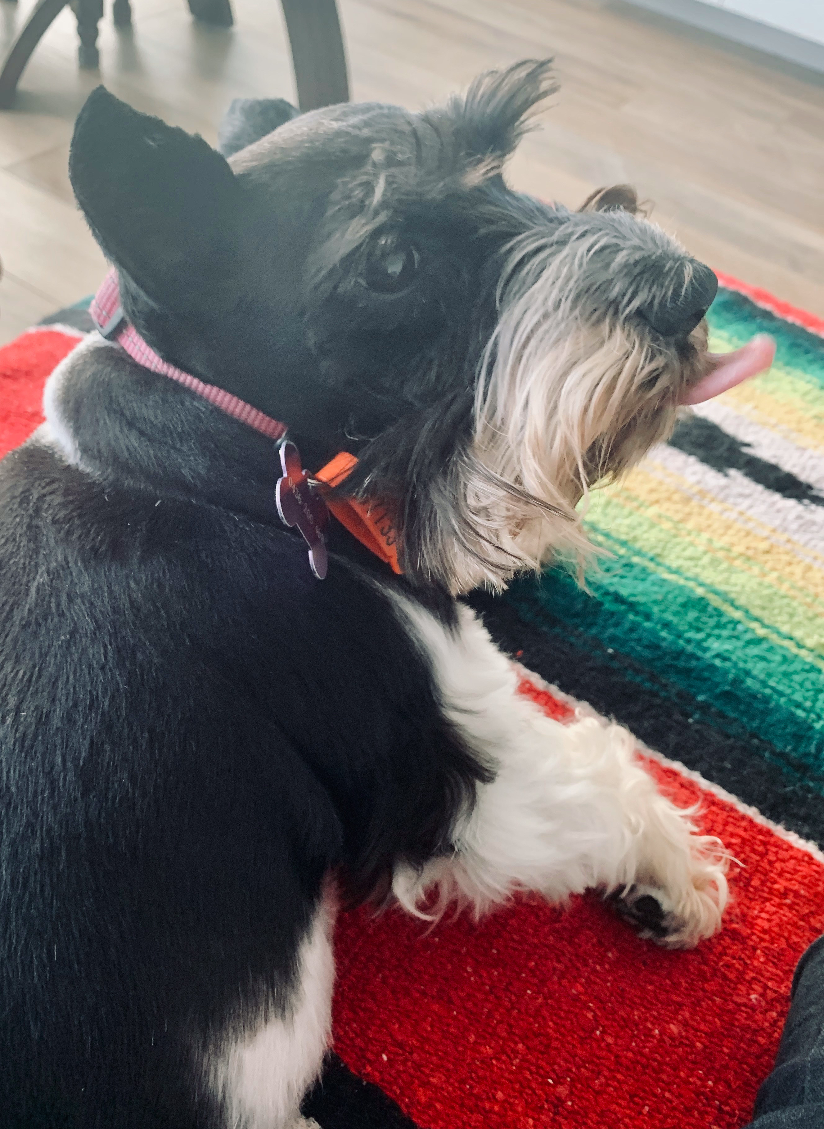 We’re here for the dog groomer. It’s a full service salon day and Rani will leave with a bow attached to her collar, a spring in her step, and smelling like lavender with an undertone of wet dog.